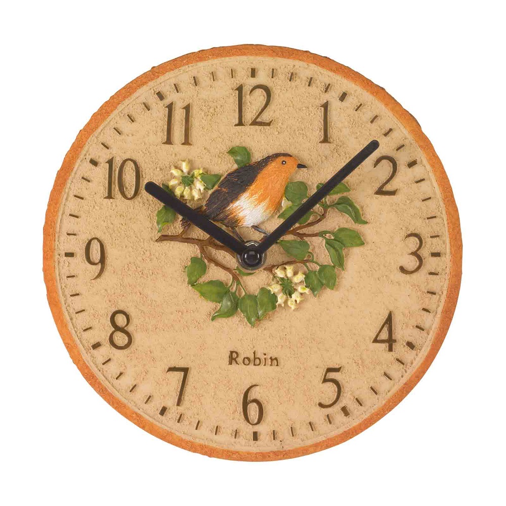 I am really loving our range of polyresin, hand painted outdoor clocks. These first two are 8" in diameter and have a robin or a blue tit at their centre.
