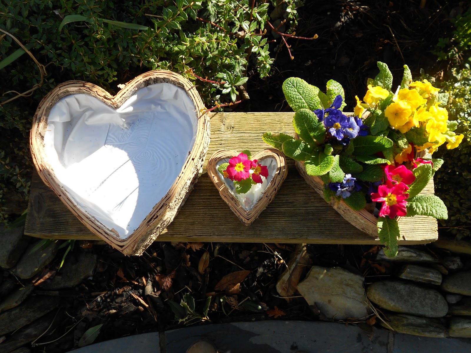 Anyone else feel like this right now!! It's been quite a week but finally the weekend is here and hopefully, fingers crossed, the weather is going to be ok. Which means of course we can all get out there in our gardens or back yards and enjoy ourselves. So how about this set of 3 Silver Birch Love Heart Containers as you can see they are lined with plastic all ready for you to pop your favourite plants in. I tried them with polyanthus and you can see they look pretty good. They are priced at £24.99 for the 3 and you