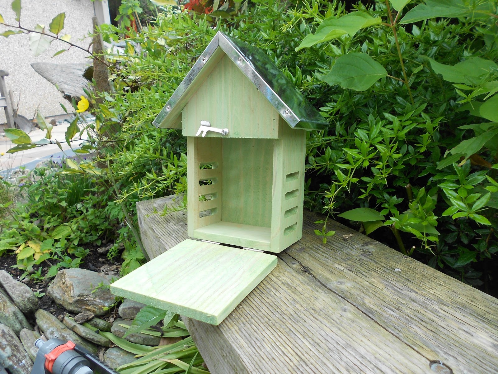 been specifically designed to allow ladybirds to shelter whilst keeping out other inhabitants and predators. It is advisable to put some leaves inside to make the ladybirds feel at home. As you can see from the pictures it has a metal roof and a front opening to allow you to fill with leaves and then clean it out once the ladybirds have gone. It measures 17x10x22cm and is priced at £9.99 and can be found on our Best for Birds page.