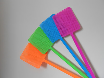 Well here at Ruddick Garden Gifts we have the perfect thing to get rid of them - Fly Swatters. They are made from a very durable plastic and come in four funky colours, pink, blue, orange and green.http://www.ruddickgardengifts.co.uk/fire/fly_swatter.html