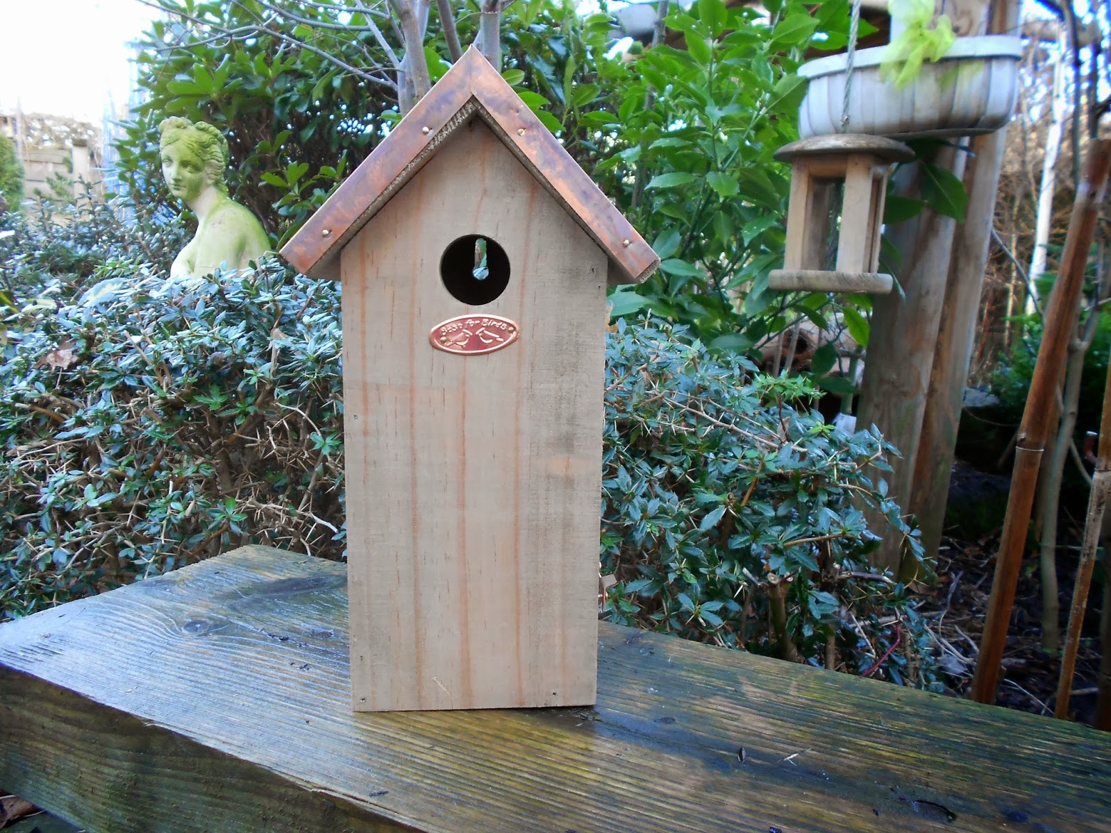 If you like something a bit more traditional, then what about our Wooden Tit Box. This has an attractive copper roof and a hinged door to one side allowing easy access for cleaning.