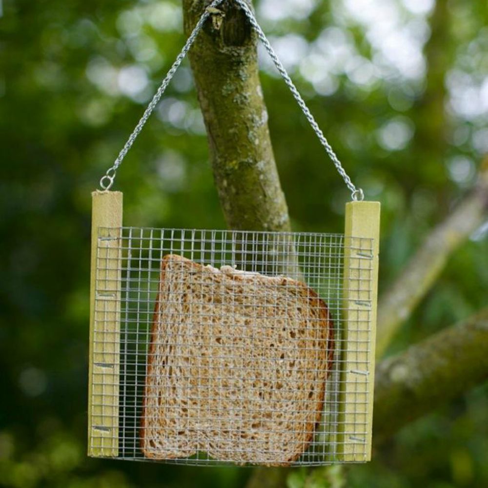 If you just want a feeder that is plain and simple then look no further than our bread feeder. Made from pine wood and wire mesh this is soooooo simple. Just pop your slice of bread in between the wire mesh and wait - the birds love it. And you get no mess on the ground and your cats, dogs or children cant pick up the stale bread. Perfect! The price is perfect too, at just £3.99 this is our cheapest yet simplest bird feeder. Take a closer look at