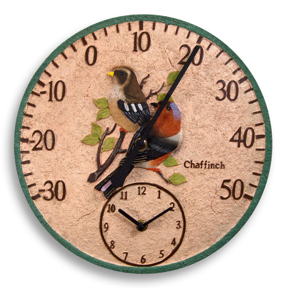 http://www.ruddickgardengifts.co.uk/clocks-thermometers-c3/chaffinch-thermometer-clock-p42