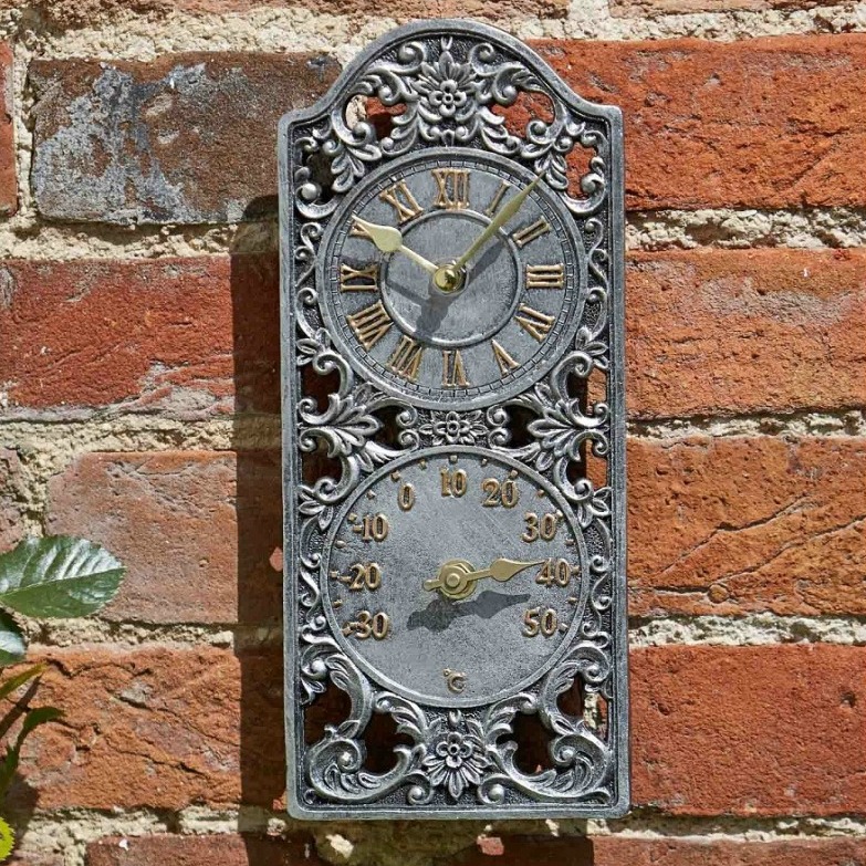 And finally for today our Westminster wall clock & thermometer is made from resin with a pewter coloured finish. This classic design shows both time and temperature and is suitable for inside or outside the home. Priced at £17.99.