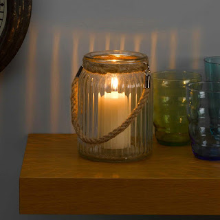 This fluted glass jar lantern is just NEW IN and has a rustic jute handle. With its simple and elegant design this lantern would look great indoors as well as outdoors and is priced at just £4.99.