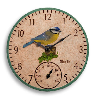 I am really loving our range of polyresin, hand painted outdoor clocks. These first two are 8" in diameter and have a robin or a blue tit at their centre.