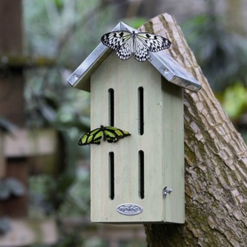 http://www.ruddickgardengifts.co.uk/bird-insect-houses-c5/wooden-butterfly-house-with-metal-peaked-roof-p24