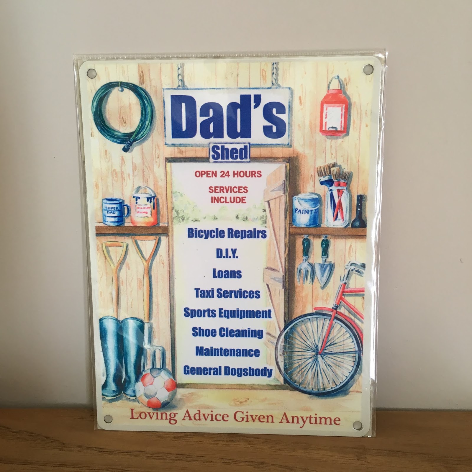 This metal wall sign says it all really so why not treat him and at just £6.00 you can't go wrong. http://www.ruddickgardengifts.co.uk/gardening-gifts-c1/garden-plaques-c14/dads-shed-metal-wall-sign-p340
