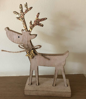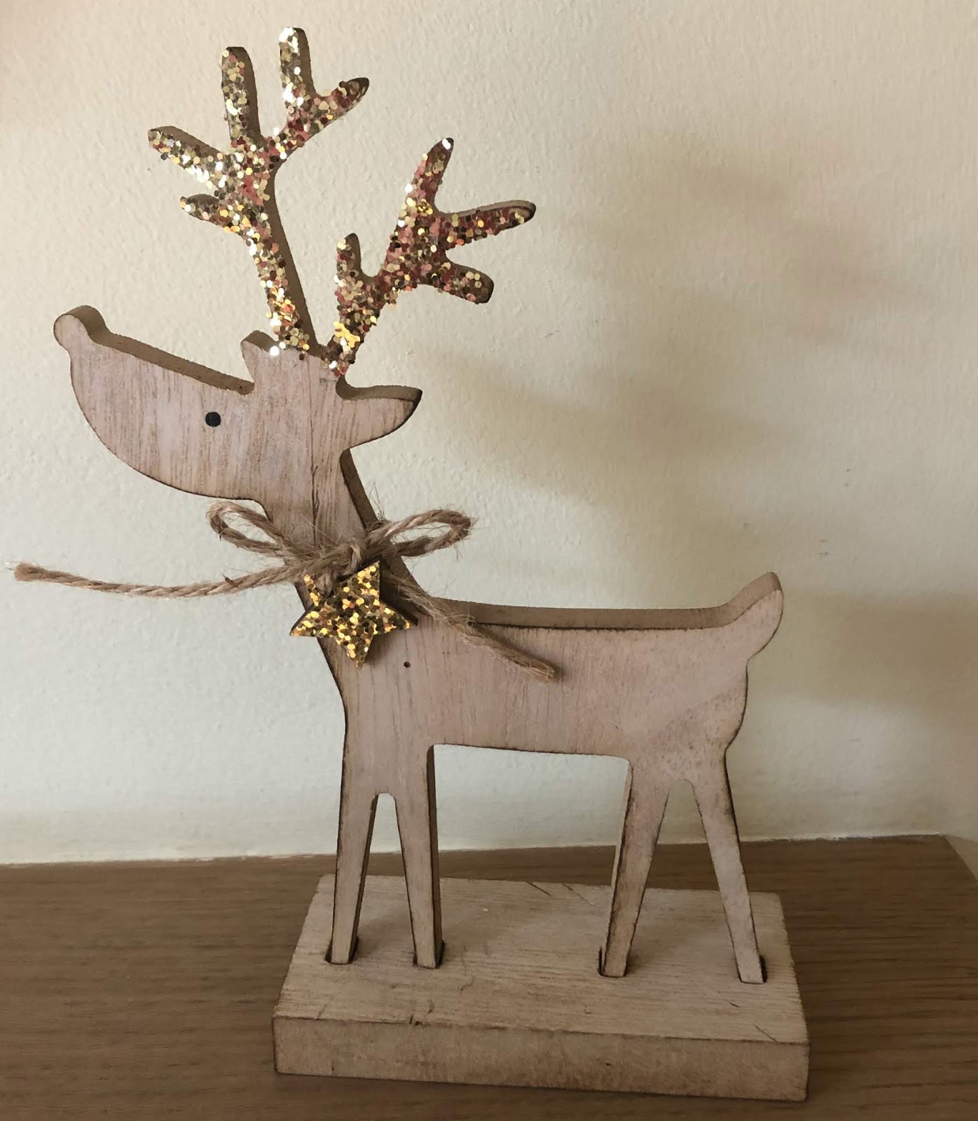 Now what about our sparkly wooden reindeer ornament. He would make a great gift with his gold sparkly antlers and star round his neck. Priced at just £4.50. See more at